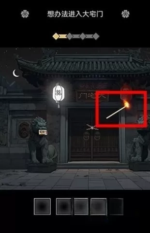 拖动火柴点燃门前的两盏灯笼,揭开新的线索。