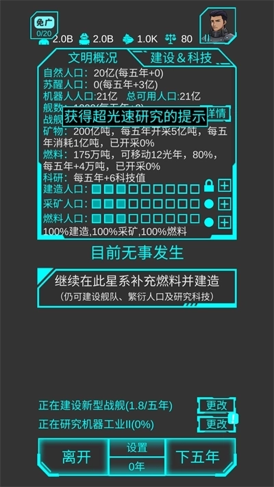 《星际守护者》是一款以太空为背景的文字剧情冒险游戏。游戏内提供了各式各样的战机型号与不同种族的角色供玩家挑选,同时支持自定义剧本难度、资源配置等参数。每次开启新局都会遇到随机生成的不同状况,玩家的每一步选择都将直接影响故事的走向与发展。