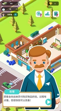 超级大卖场是一款模拟经营类游戏,玩家在游戏里经营的超市需要吸引更多顾客前来消费,这样既能通过停车场收取停车费,又能获得超市商品的销售收益,从而在短时间内创造可观的利润。