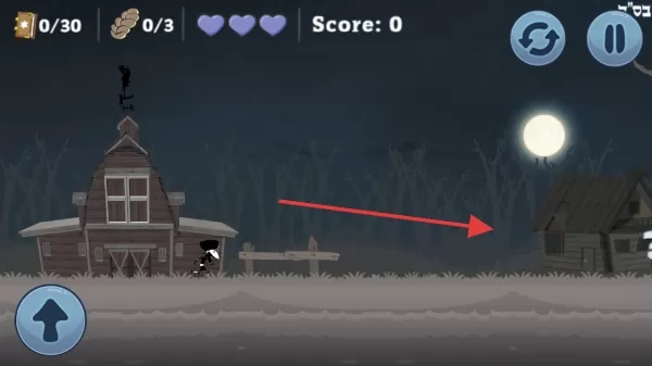 2、在关卡里,操控角色(那个戴帽子手拿书本的人物),顺着箭头所指方向(比如箭头指向小屋)进行移动,收集书籍(目标显示为“0/30”),同时要避开各类障碍,以此完成基础任务。
