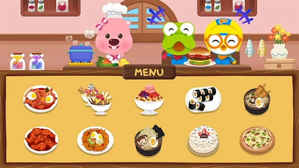 儿童卡通角色联动:以热门儿童卡通角色波鲁鲁作为核心搭档,角色造型延续原作的可爱风格,互动环节设有专属语音与动作反馈机制,助力玩家在烹饪过程中沉浸式体验熟悉的卡通氛围。
