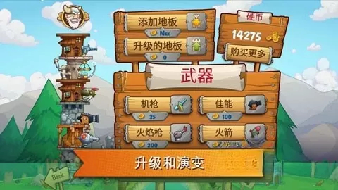 1、玩家的防御塔持续向上提升,不断解锁更多技能与武器。