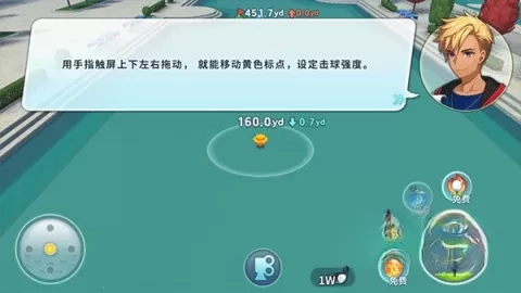 3、按住屏幕,拖动手指移动指示标记,以控制击球力度。