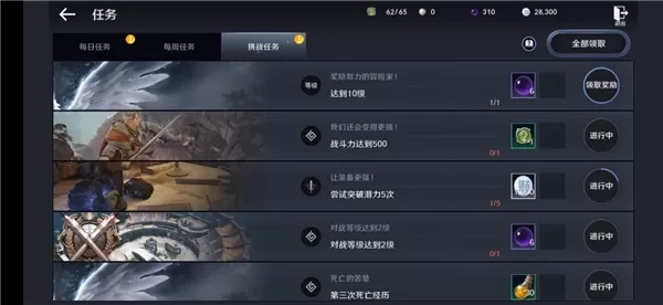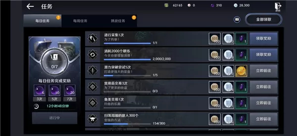每日任务:每天刷新完成后可领取丰厚奖励;