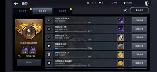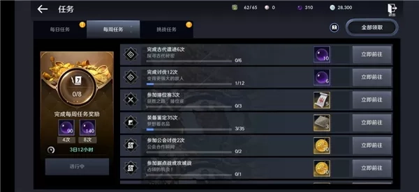 每周任务:每周刷新完成后可领取丰厚奖励;