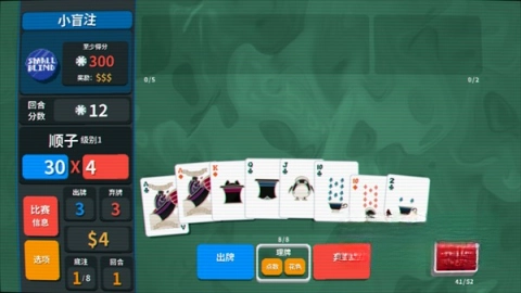 玩家开局拥有一副完整的52张扑克牌组,每次出牌或弃牌后系统都会自动将手牌补至满额,而有限的操作次数则让策略的制定与执行变得尤为关键。