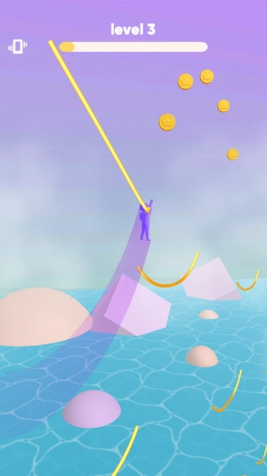 玩法新颖有趣:核心机制是通过绳索驱动实现跳跃闯关,玩家操控角色凭借绳索在海面上方灵活穿梭,既能感受空中移动的畅快体验,又能收获成功通关的满满成就感。