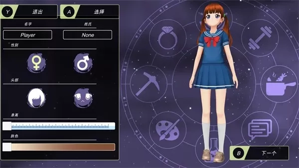 外貌调整:支持发型、瞳色、身高、体型等20+项参数调节,可导入自定义头像。