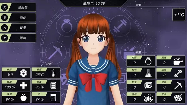 时间规划要点:在自由活动时段,必须兼顾学习、打工以及社交这几方面,若过度倾向其中某一项,就可能致使属性失去平衡(例如,饥饿值过低便会引发昏迷状况) 。