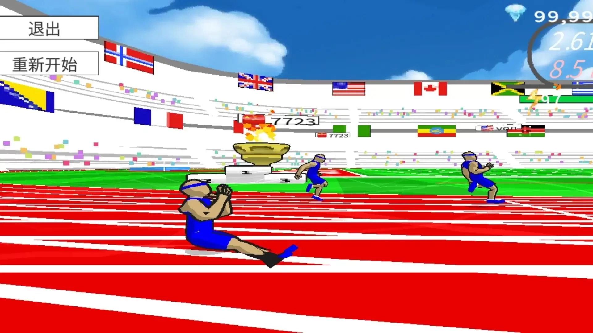 6、当角色冲过终点线后,系统会立即显示最终比赛成绩。