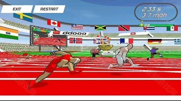5、操作方式极为简便:点击屏幕频率越高,运动员奔跑速度就越快,这对玩家的手速和节奏掌控能力是一种考验。