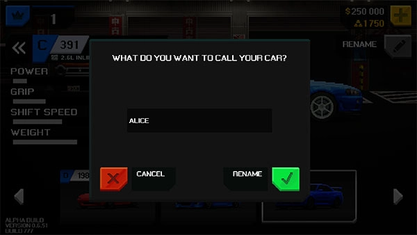玩家可以选择车库中比较喜爱的那几辆为它们取昵称,昵称会在比赛结束时显示