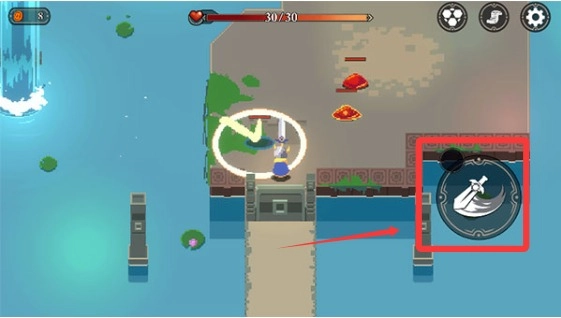 再次出现后,你会抵达一片陌生的大陆,这里栖息着众多怪物,你可以借助手中的武器将它们消灭,点击右侧的按键就能发起攻击。