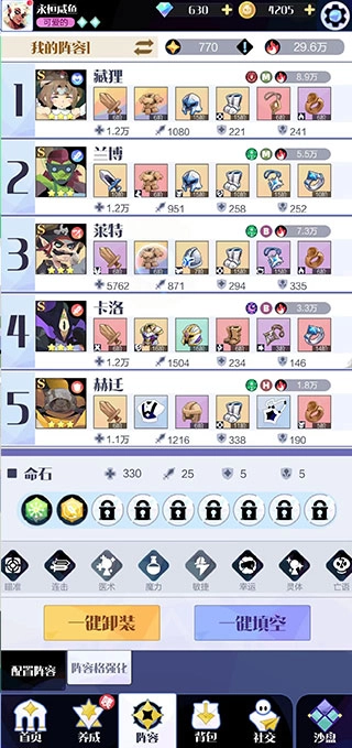 冒险前先进行消除操作,体验上就像召唤角色去挑战魔王一样;消除完成并保留阵容后,后续就一直用这套阵容推进,而且阵容还能强化——主页的阵容界面里有阵容格强化功能,不用纠结直接拉满就行,这样应该能顺利通过前面的关卡。之后盛典和首冲活动都会解锁,这时候就可以开始抽卡了。