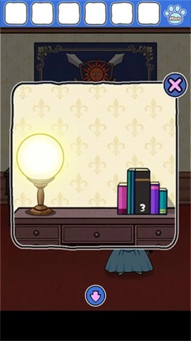 继续往右走,进入有书架的房间,把3号书放到下层的空位上,打开上面的柜子,瞧瞧里面藏着什么秘密。