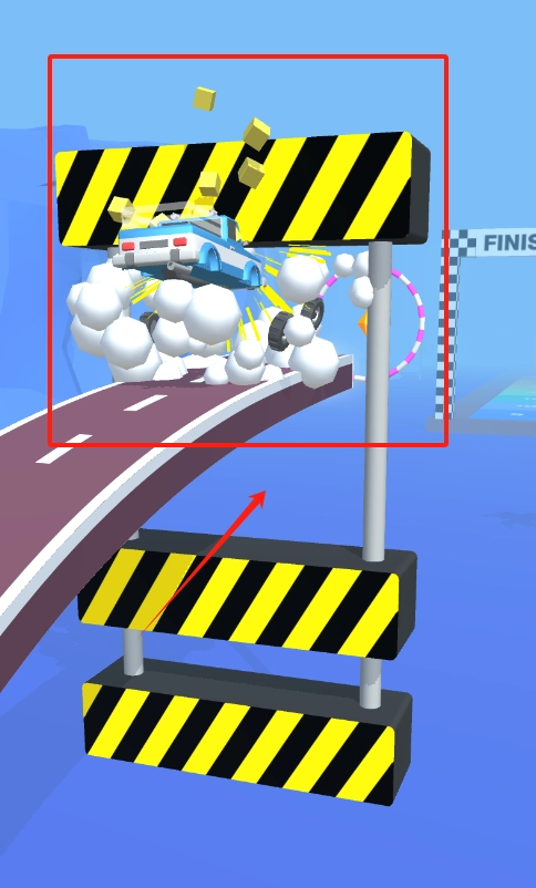 冲过终点线撞开障碍,注意别翻车保持平衡。
