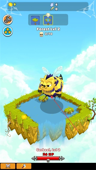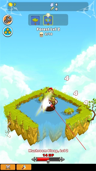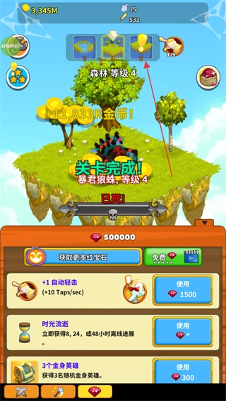 在场景里点击怪物就能发起攻击,把怪物打败后可以得到金币和经验,这些奖励能帮助提升关卡等级,比如森林等级2级、3级、4级这样逐步升级。