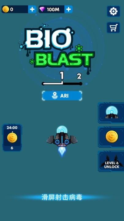 游戏玩法:通过点击屏幕滑动来控制飞机行动,飞机会自动攻击,病毒核心显示能够承受攻击的次数,脱离屏幕减缓运行速度。