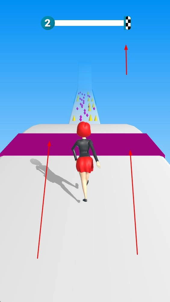 持续操控角色越过一道道障碍,收集沿途出现的各类物品,全力朝着终点线冲刺,一旦成功抵达终点就能完成当前关卡,并解锁下一关的挑战。