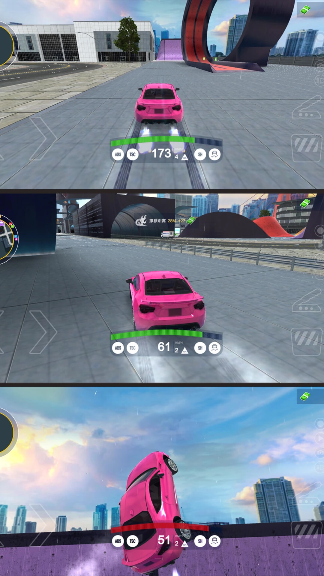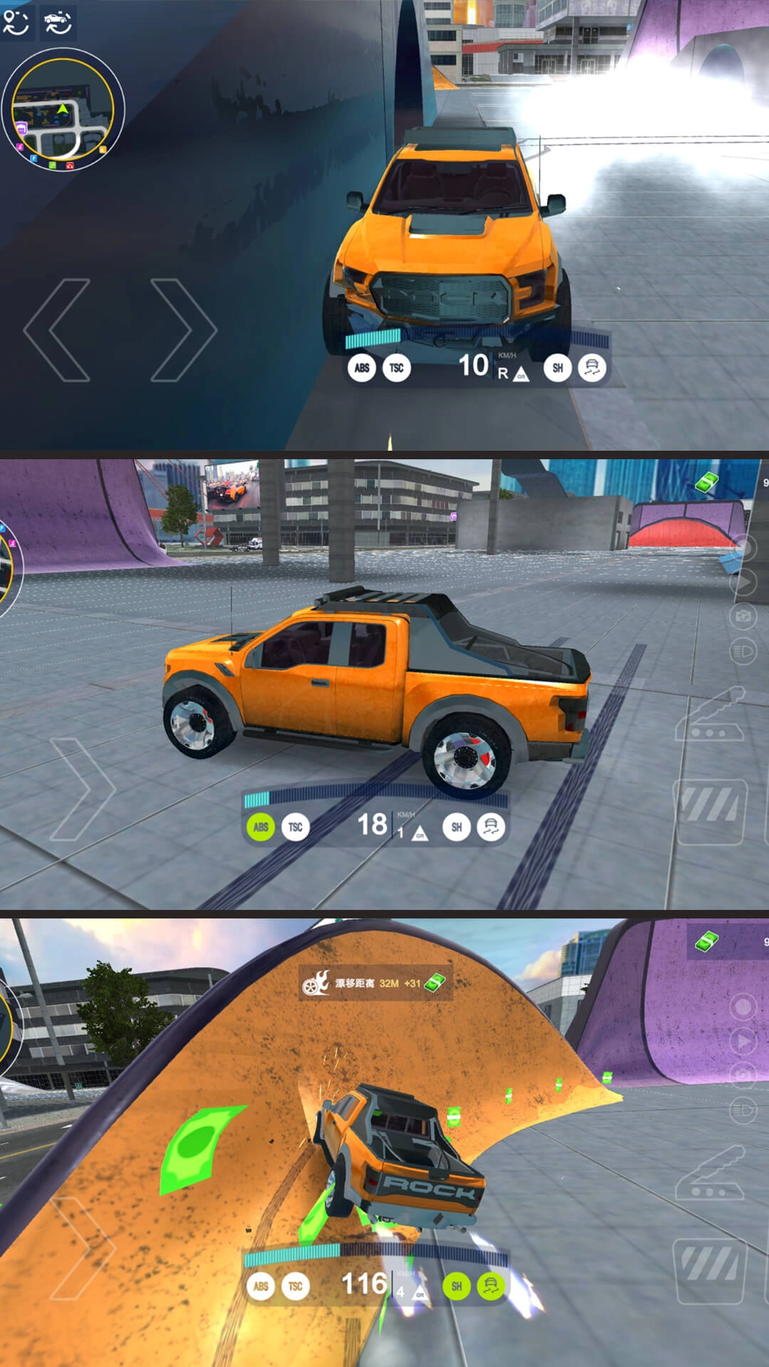 特技赛道腾空玩法:借助城市里的斜坡、断桥这类特殊地形来触发飞跃动作,在空中完成翻转、滑翔之类的高难度操作,落地后保持速度以衔接接下来的赛程。