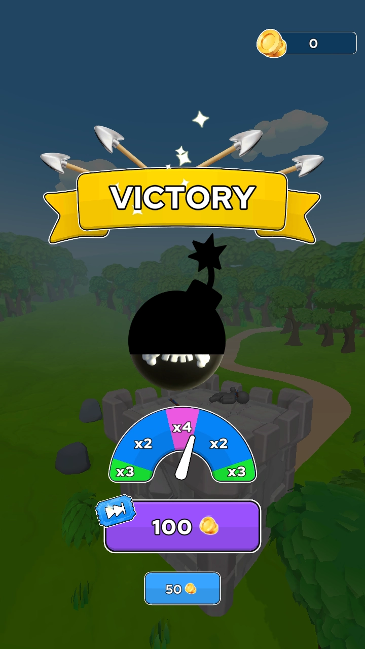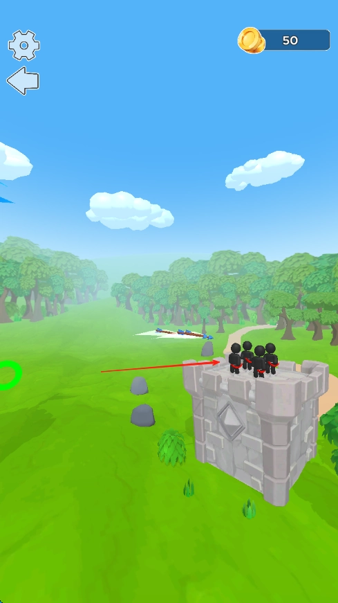 发现敌方目标后,调整好角度与力度,按照箭头的指引射出弓箭,努力击中敌人。