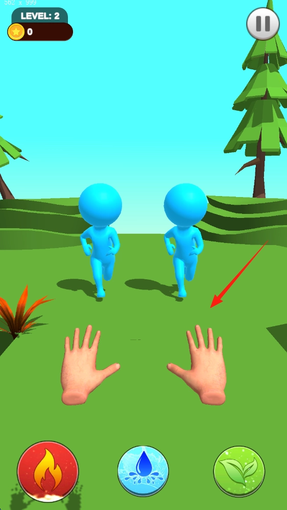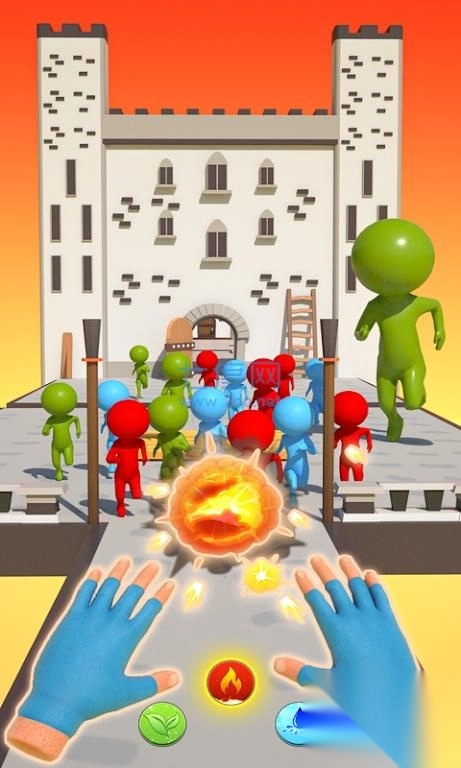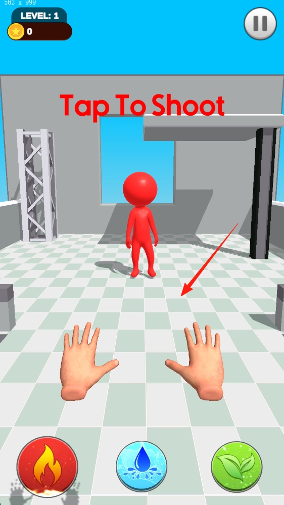 点击屏幕上的“Tap To Shoot”按钮,选择元素类技能,对红色小人发起攻击,通关后点击“NEXT”进入下一关。