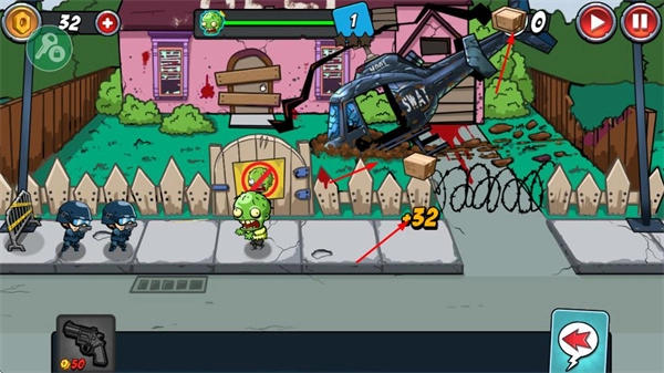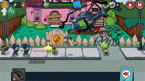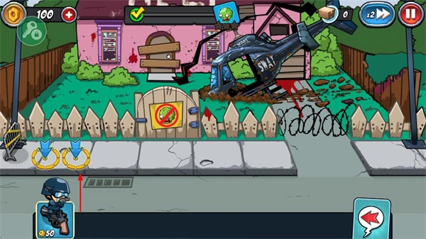 经典塔防策略核心:延续塔防游戏的布局策略玩法,玩家要合理布置防御设施、操控警察角色,在僵尸冲破防线前将它们消灭,以此考验战术规划能力。
