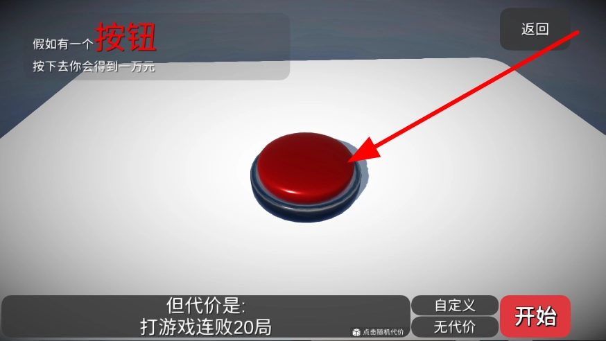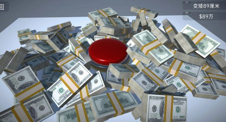 按钮点击挑战:当屏幕上仅呈现一个按钮时,玩家需决定是否按下它。每一次点击后,系统都会即刻展示出所获得的奖励数值以及所付出的代价数值。