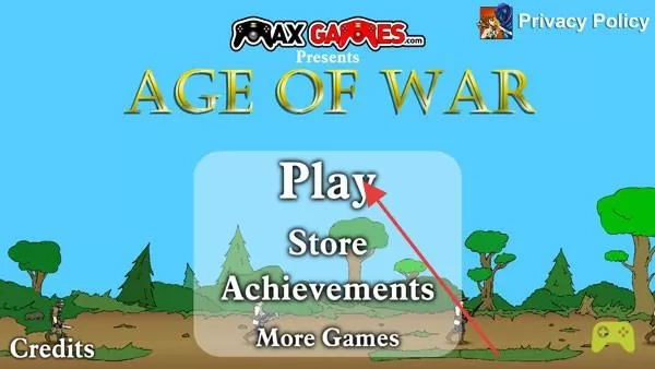 1. 在游戏启动界面上,会显示“Age of War”字样,同时设有“Play”(其含义为开始游戏)、“Store”(即商店)等选项,该界面由“MAX GAMES”负责呈现。