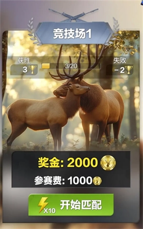 真人匹配开启狩猎PK,三局对战凭分数定胜负。缴纳参赛费用后,获胜即可赢取丰厚奖金,持续积累奖杯还能解锁更多关卡。