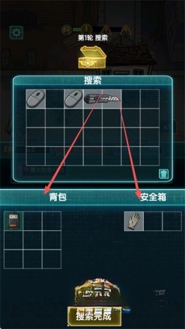 5、搜索过后你可以将找到的物品存放在背包或安全箱中。安全箱内的物品是绝对安全的,即便你不幸战斗失败,背包里的物品却可能在死亡时遗落。