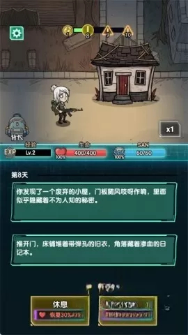3、当你进入未知房间时,可以选择搜索资源或则稍作休息,策略的制定至关重要。