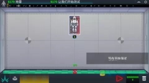 3、武器放置好后,点击右下角的箭头开始测试;