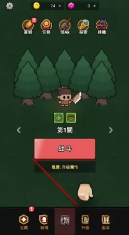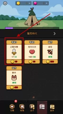 1、回到游戏主界面,点击屏幕下方的升级按钮。