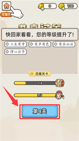 恭喜你过关了,点击红色框框里的第3关。