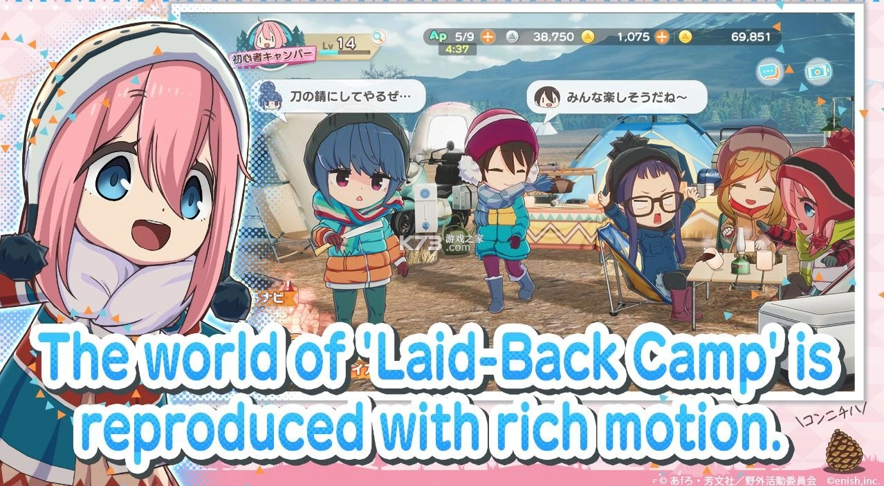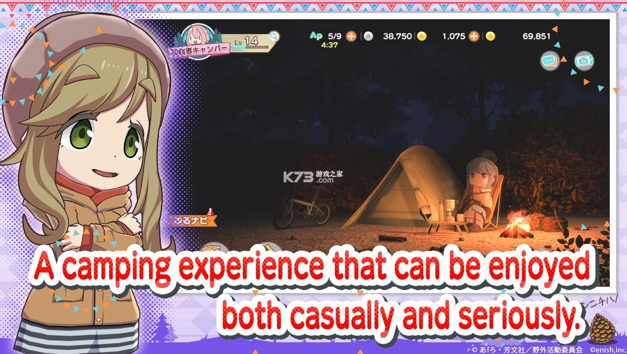 《摇曳露营》是一款有趣的模拟经营游戏,玩家可以带领角色开启露营之旅,探索优美的自然风光,还能与其他玩家互动,体验充实的露营生活。游戏内包含丰富的动作与对话内容,让玩家能和心仪角色亲密互动;同时融入了更多创新的探索元素,既还原了原作氛围,又带来独特的日式漫画风格冒险体验。此外,游戏中还有各类设备与车辆可供收集使用,充分展现当地风景与户外活动的魅力,参与其中还能获取丰厚奖励。