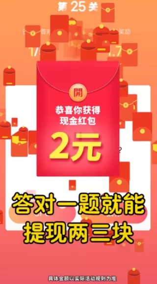 这是一款通过答题闯关就能领取红包的游戏,精心打造了海量趣味题目,涵盖科学、地理、数学、生活、艺术、体育等各领域的百科知识问答,内容更为全面。一场融合智慧与勇气的答题挑战,正等你来完成。