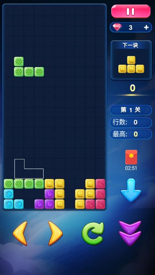 3、高分挑战技巧:集中精力打造连续消除链,依据对下一方块形状的预判来规划布局,在限时模式里维持稳定节奏,使单位时间的得分效率达到最大化。