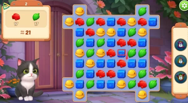 1. 对传统三消机制进行优化升级,融入猫咪互动元素。在消除过程中,会有猫咪在一旁嬉戏,若成功通关,就能获取专属奖励,用于照料宠物。