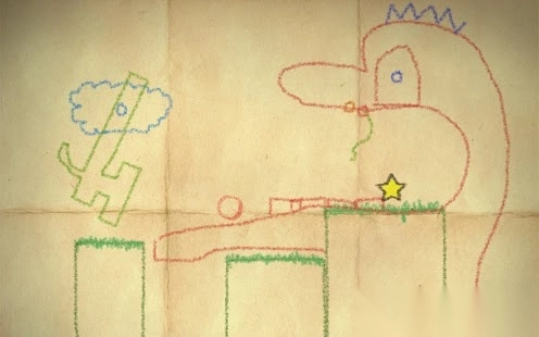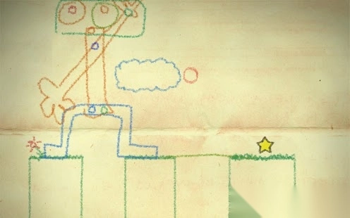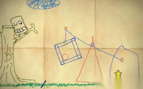 在手绘风格的关卡里,点击画笔工具,通过绘制线条来搭建路径,帮助角色(或物体)到达黄色星星。