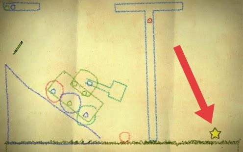 你得自己留意斜坡和车辆的构造,用画笔添加线条来调整重心,让车辆朝着星星的方向移动。