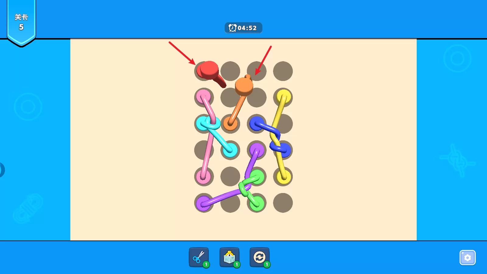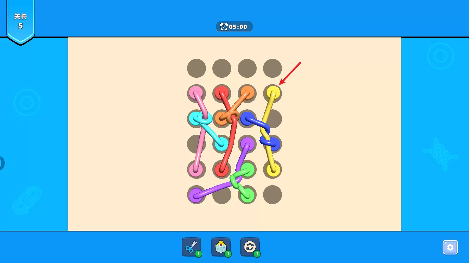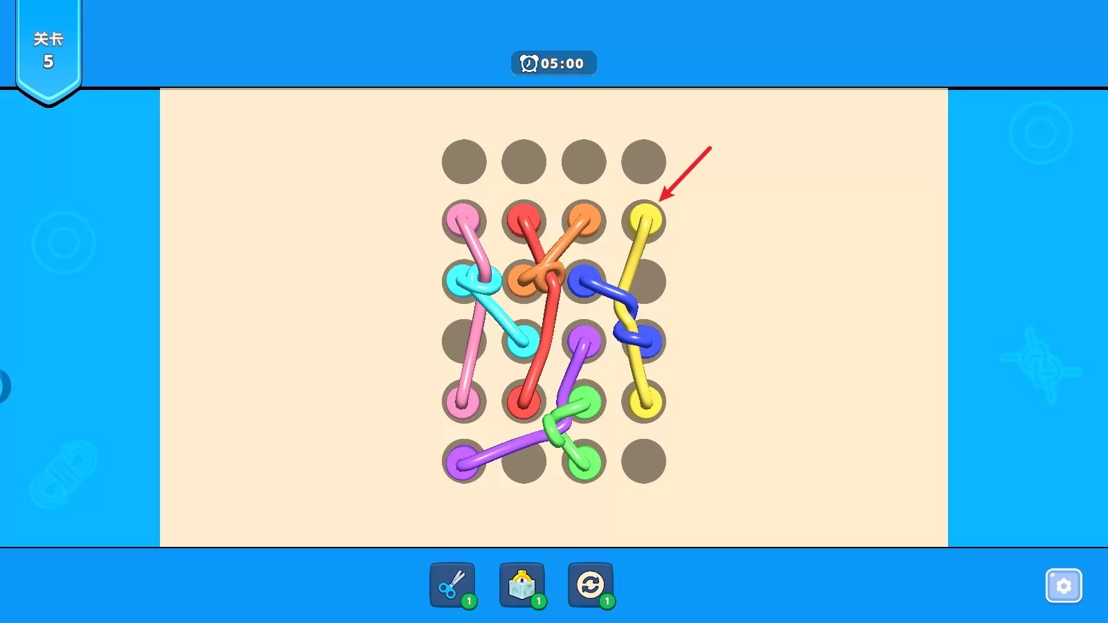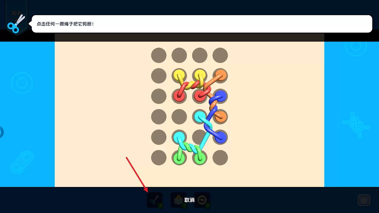 3、通过移动绳头的方式挪开绳子后就会自动消除。