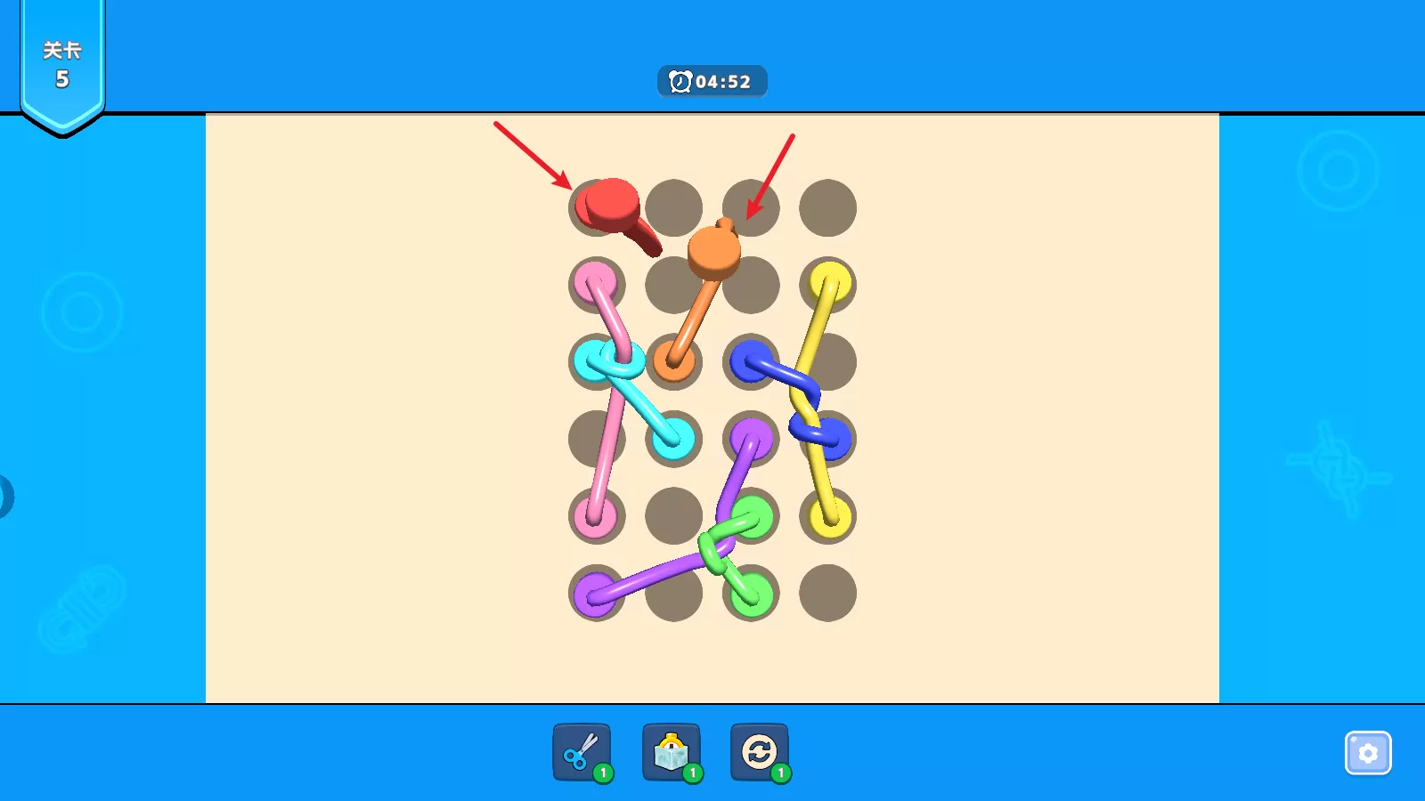 绳子消除,一款超有趣的休闲益智解绳游戏。在游戏里,你会瞧见五颜六色的绳子彼此缠绕。此时,你得通过挪动绳子的两端,改变它们的位置,直至所有绳子解开消除,便可顺利过关赢取奖励。而且,游戏中还设有三种道具,助力你更轻松通关。快来试试吧!