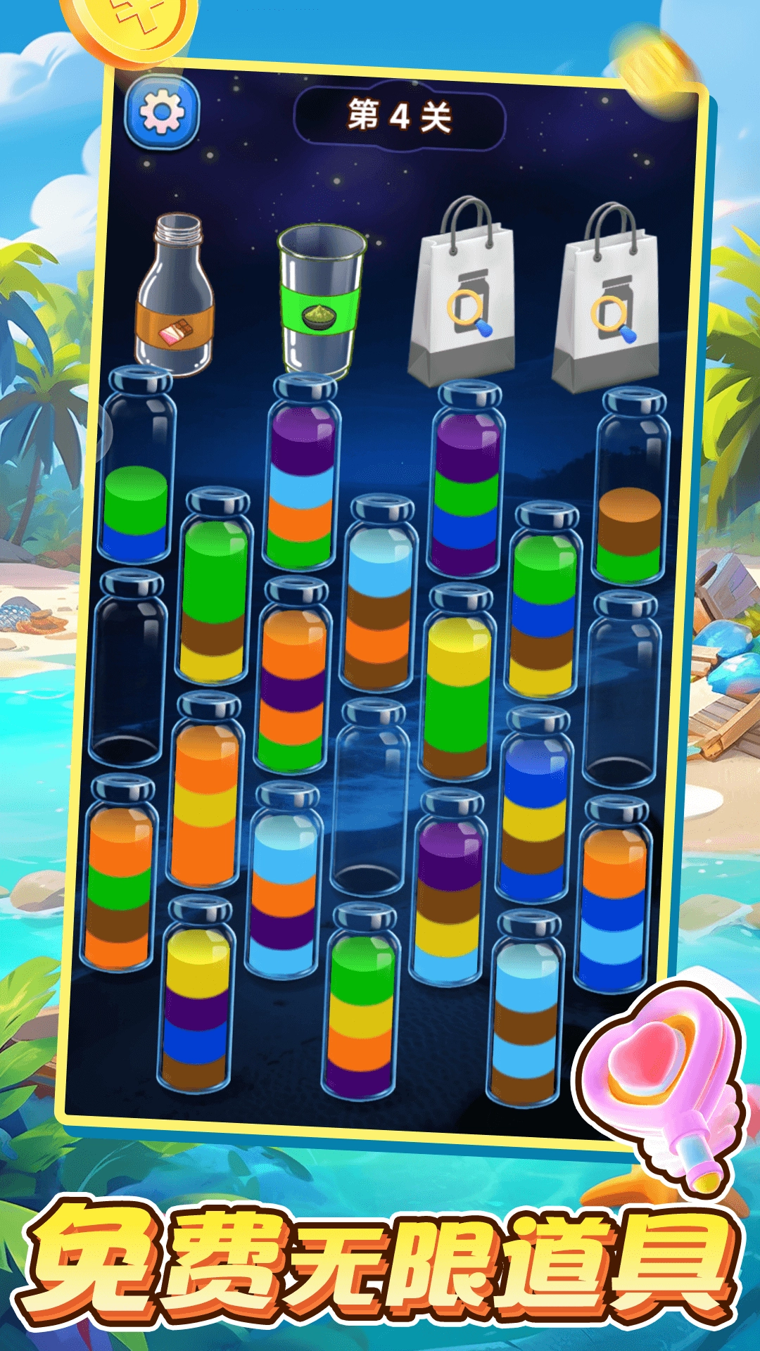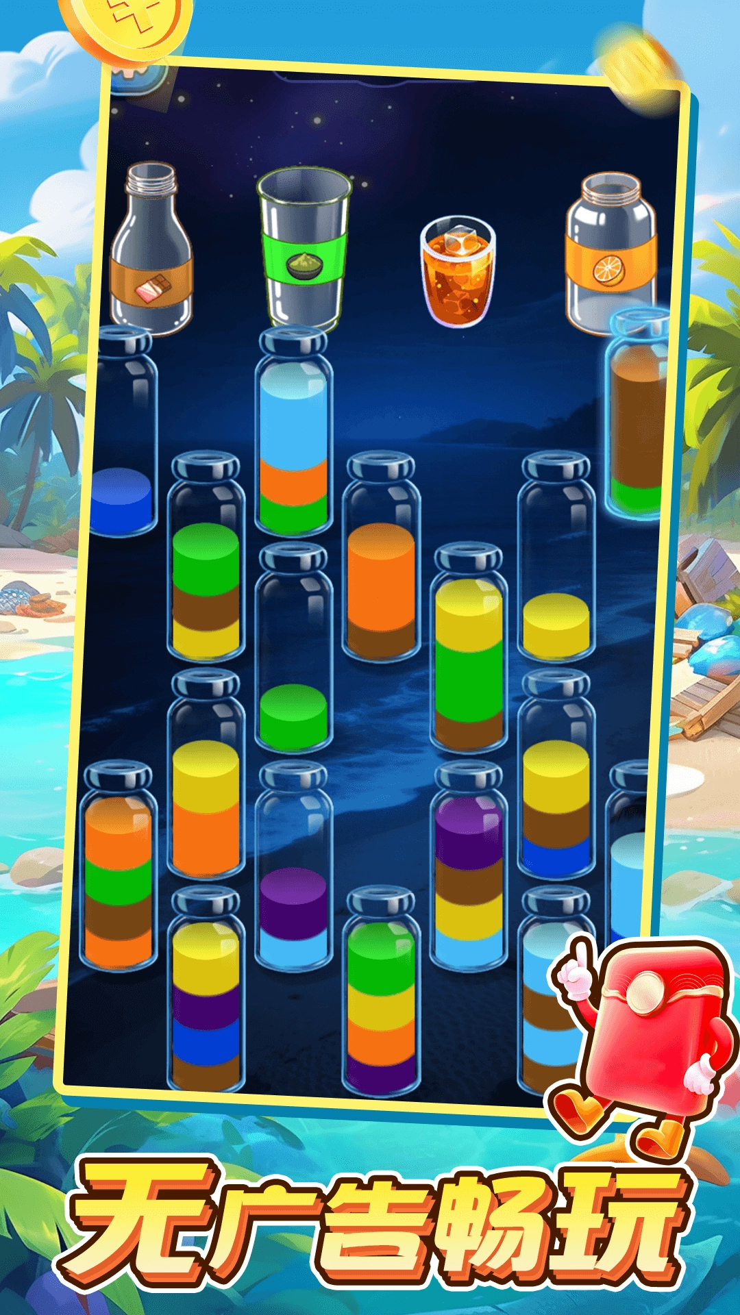 这款游戏以经典的液体分类谜题为设计基础,玩家需要通过有条理的归纳整理操作,在数字空间里感受条理与秩序所蕴含的美感。
