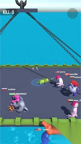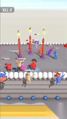 操控橡皮人角色,通过推、拉、抛等灵活操作将其他玩家扔出赛场边界,以此减少竞争对手的数量。