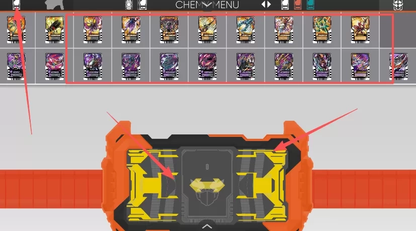 2、来到假面骑士歌查德变身模拟器界面以后,点击左上方的骑士卡牌,选择你要模拟变身的插入卡槽之中。
