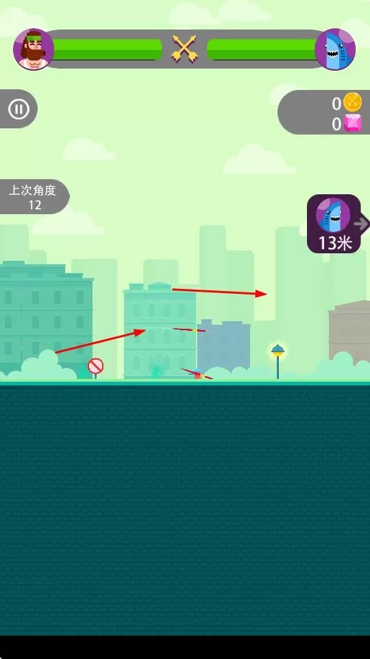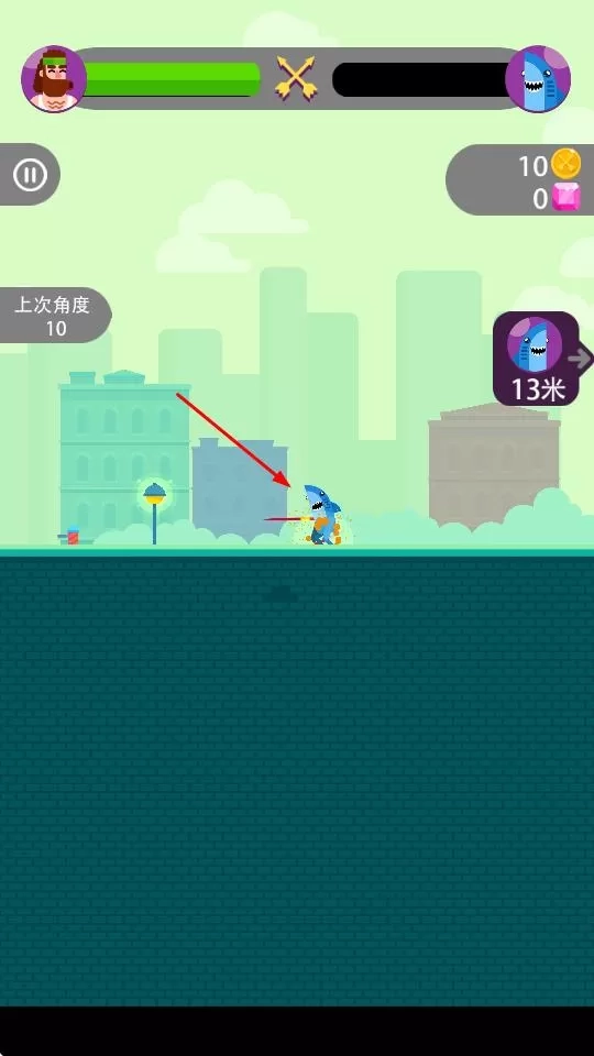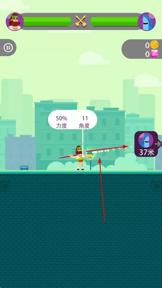 1. 进入游戏后,对投掷的力度与角度进行调整,朝着目标方向投掷武器,进而开启对战。