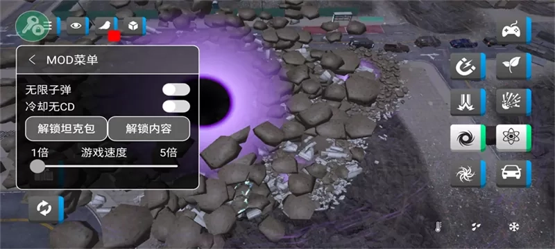 3、点击右侧按键,能够调出破坏城市的道具。