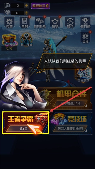 进入游戏后,点击【王者争霸】。