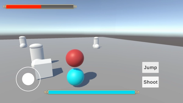 移动操控方式如下:通过滑动屏幕左侧的虚拟摇杆来调整方向,点击【Jump】按钮可实现跳跃以避开障碍,点击【Shoot】按钮则能发射能量波。